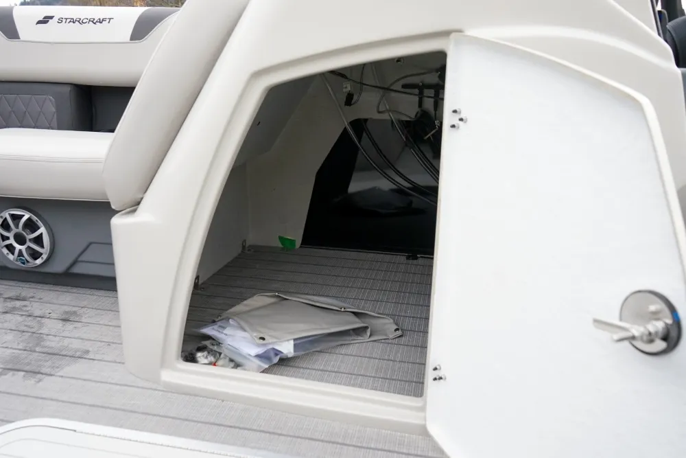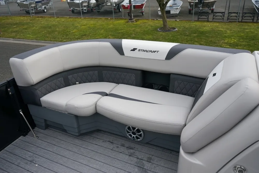 The Starcraft Pontoon SLS 3 Q DH, where ""DH"" stands for Dual Helm, is an exceptional choice for those who crave both performance and versatility on the water. Equipped with the HMX Third Tube Performance Package, this pontoon delivers enhanced stability and agility, ensuring an exhilarating ride with every outing. The standout feature is the convertible flip back lounge, allowing for effortless transitions between relaxation and active fun, accommodating both lounging and socializing. With its sleek dual helm design and thoughtfully crafted amenities, the SLS 3 Q DH promises a fantastic experience for families and friends alike, making every day on the water truly memorable.