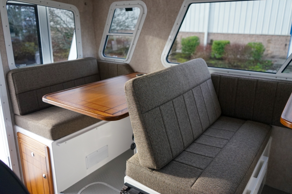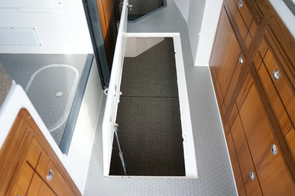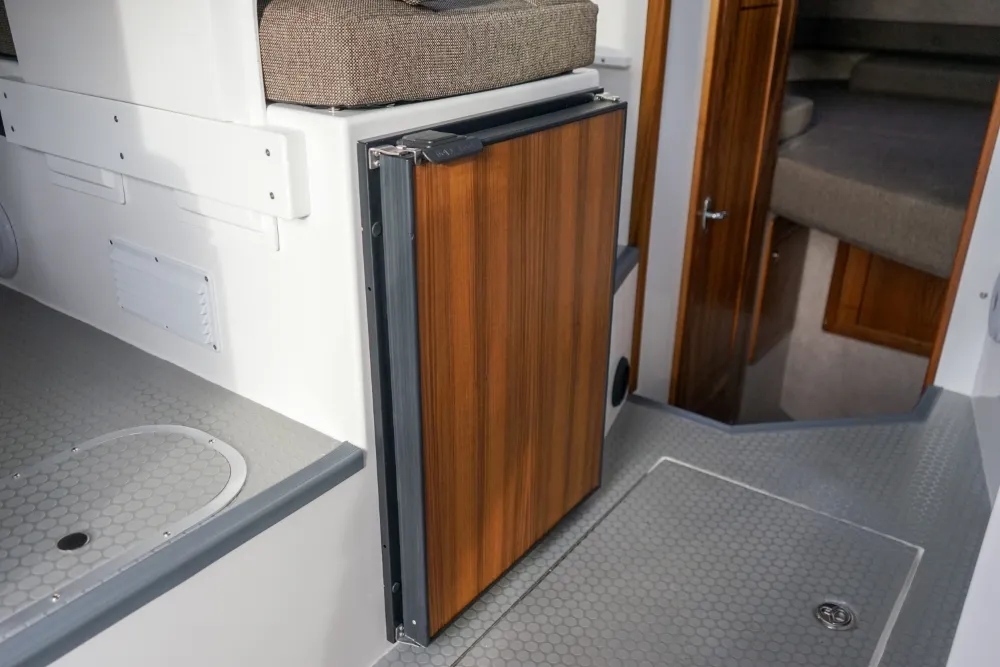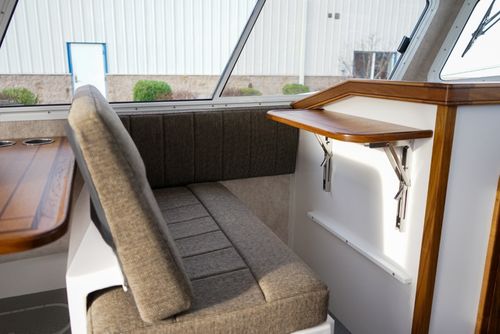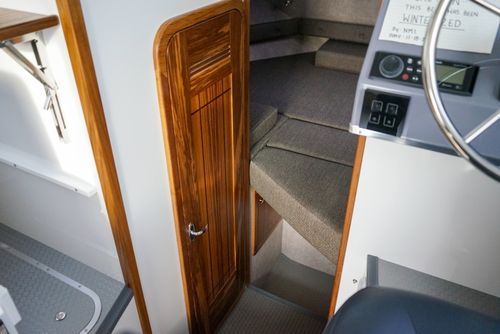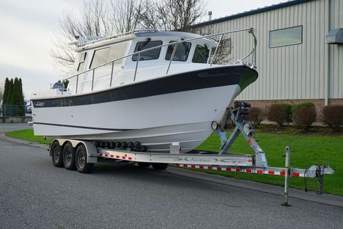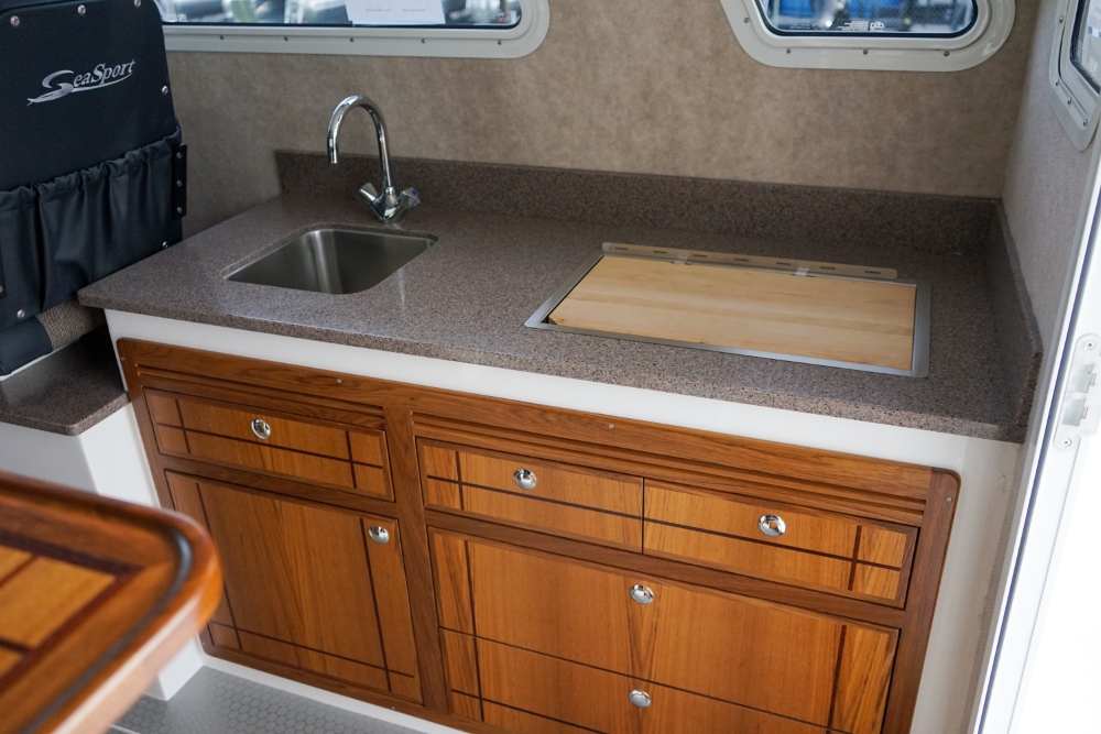 The Sea Sport Commander 2800 is a 28-foot trailerable cabin cruiser that combines rugged seaworthiness with practical comfort, ideal for both serious fishing and family cruising. With a beam of 9'9"", it offers a spacious interior that includes a forward quarter-berth, a full galley (2-burner propane cooktop, deep sink with hot & cold water, 3.5 cu ft refrigerator), and a comfortably enclosed electric marine head plus a hot-water shower. The cabin sleeps up to six people, thanks to a V-berth, dinette that converts to a berth, and a port-side aft stateroom. Built with a 22° deadrise hull, stainless-steel bow rail, non-skid deck, and self-draining cockpit, it’s designed to take on rough water. Standard features also include hydraulic steering, trim tabs, a built-in livewell, and a durable aluminum windshield with tempered glass. With a 300-gallon fuel tank, 60-gallon water tank, dual-battery setup (one for house power, one for start), and ABYC / USCG certification, the Commander 2800 is a true dual-purpose boat, comfortable for cruising, and capable enough for fishing.