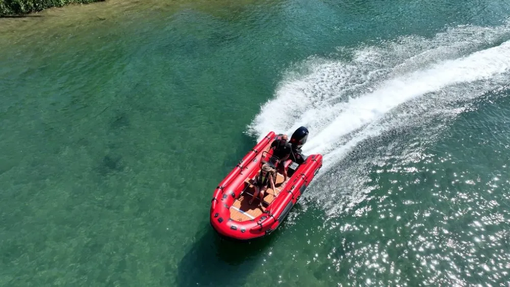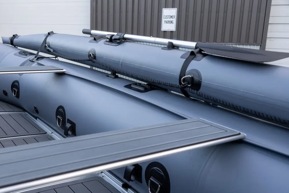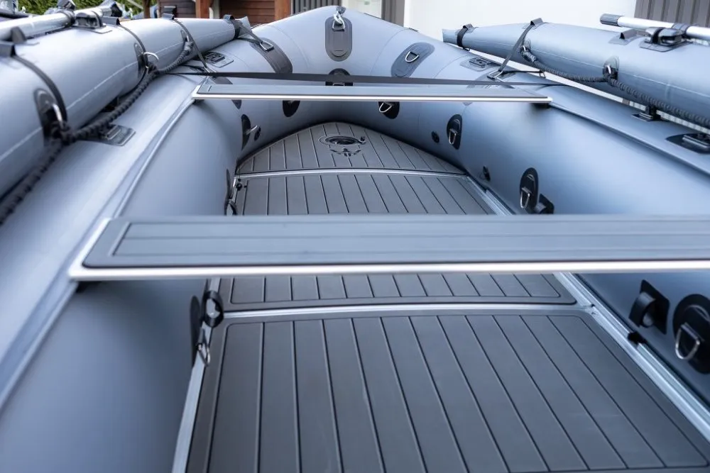 A full-length 8″ wide protective strip runs beneath the tubes and along the keel—reinforcing high-wear areas during launches, landings, or beaching.